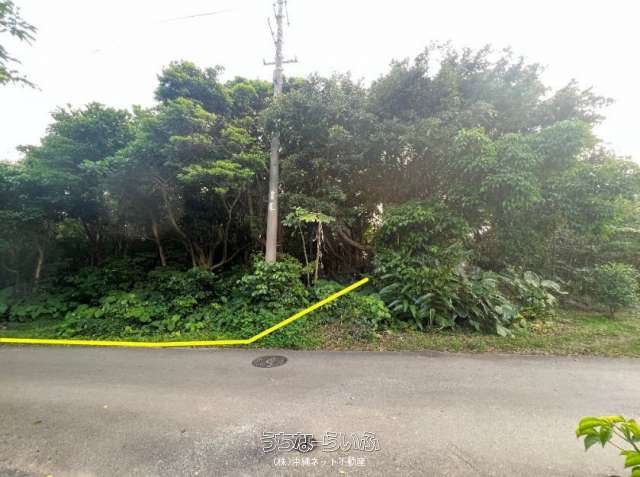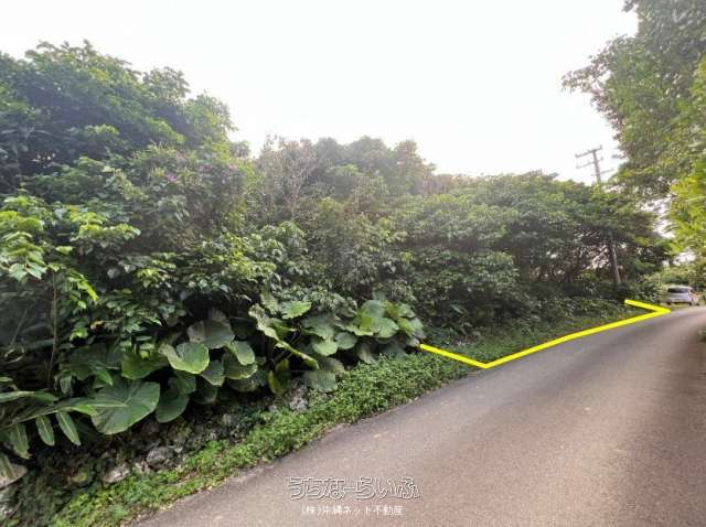 美ら海水族館近くのヤンバルの売土地、フクギや古民家など昔ながらの雰囲気の残る地域ですが近年は新築アパートも建ってます、美ら海水族館やリゾートホテルなどの観光関連の施設で働く従業員の方々向けのアパートや大きめの別荘や宿泊施設もOK、セットバックあり(セットバック面積:約12㎡)