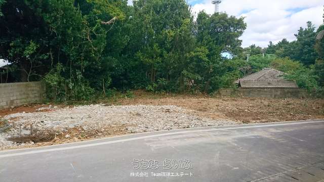 今帰仁諸志、フクギが優しい影を下ろす静かな集落内。124坪の宅地です。間口も広いです。