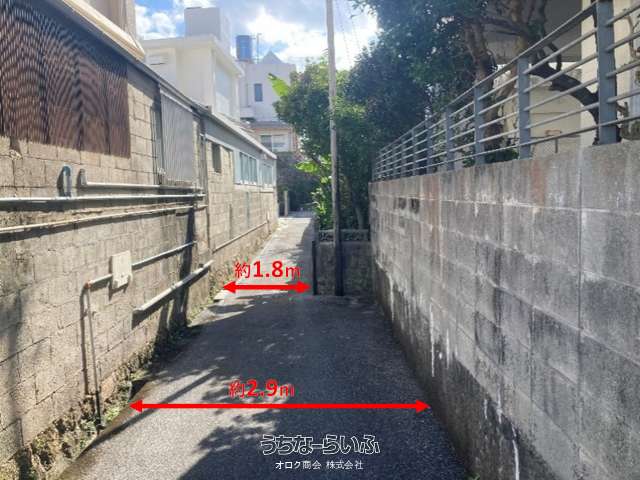 | 備考 | ●価格:1,990万円 ●土地面積:140.98㎡/42.64坪 ●坪単価:46.6万円 ●固定資産税(土地):18,427円 ●固定資産税(建物):11,601円 ●地目:宅地 ●現況:上物あり ●法令上の制限:那覇市景観計画 ●道路幅員:東側1.8m ●道路間口:東側約10.5m ●道路備考:2項道路(私道)、セットバック要 ●学校区:高良小学校徒歩約6分、小禄中学校徒歩約16分 ●現状有姿引き渡し ●建物内井戸あり ●越境の可能性あり(北側塀、電線) ●再建築時セットバック要(約1.1m、約3.5坪) |