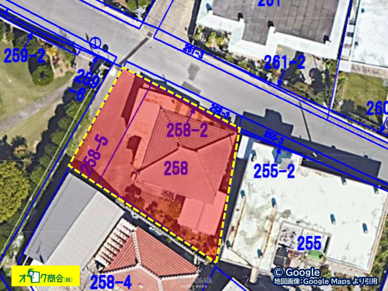 | 備考 | 【物件概要】 ・物件名:売地 ・物件番号:C26-13 ・所在地:糸満市字大里 ・価格:1,850万円 ・坪単価:坪23.7万円 ・土地面積(公簿):258.08㎡(78.06坪) ・土地権利:所有権 ・地目:宅地 ・用途地域/都市計画:市街化調整区域・無指定 ・建蔽率/容積率:60%/200% ・現況:上物あり ・現状有姿での引渡し (築56年、延床面積 約105.34㎡/31.86坪、コンクリートブロック造、セメント瓦・亜鉛メッキ鋼板葺、平屋建) 【土地情報】 ・接道:北側 幅員 約6m(接道種別:1項1号) ・間口:約15m ※公図 ・接道備考:北側 1項1号 【法令・制限】 ・法令上の制限:糸満市景観計画 【設備・インフラ】 ・上水道:有 ・浄化槽:有 ・ガス:プロパン 【固定資産税等】 ・土地:17,184円(令和7年度) ・建物:4,328円(令和7年度) 【費用・取引条件】 ・所有権移転登記費用:買主負担 ・仲介手数料:(価格×3%+60,000円)×税 ・取引態様:仲介 ・取扱い不動産会社:オロク商会株式会社 【交通・学校】 ・交通:バス停「大里」徒歩約2分 ・学校区:高嶺小学校 徒歩約5分/高嶺中学校 徒歩約5分 【引渡し・備考】 ・引渡し:相談 ・備考:上物あり(利用検討される方は内覧可能) ・現状有姿での引渡し |