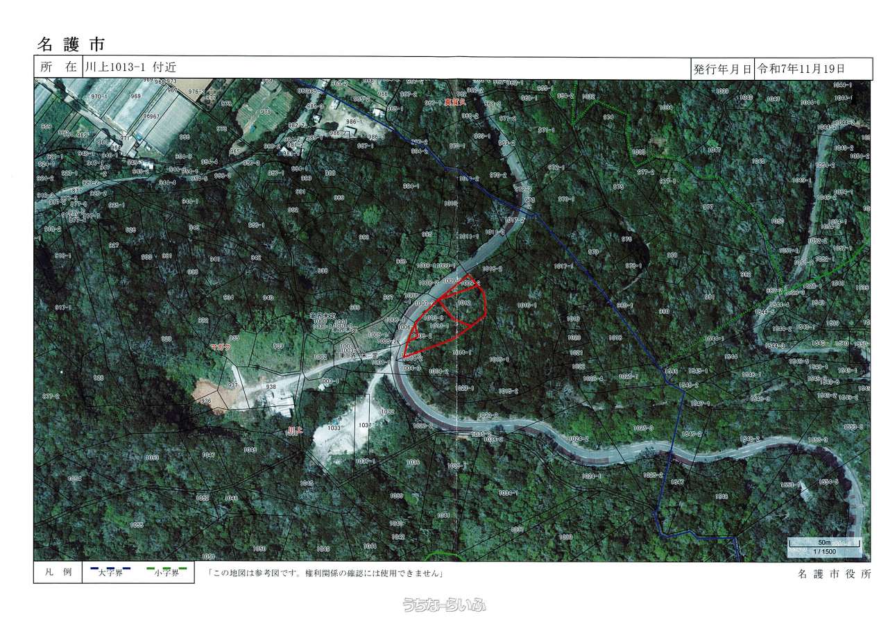 | 価格備考 | 4筆合計=980万(税込) ①川上1013-1=850㎡②川上1009番2=138㎡ ③川上1012番=644㎡④川上1006-2=36㎡ | ||