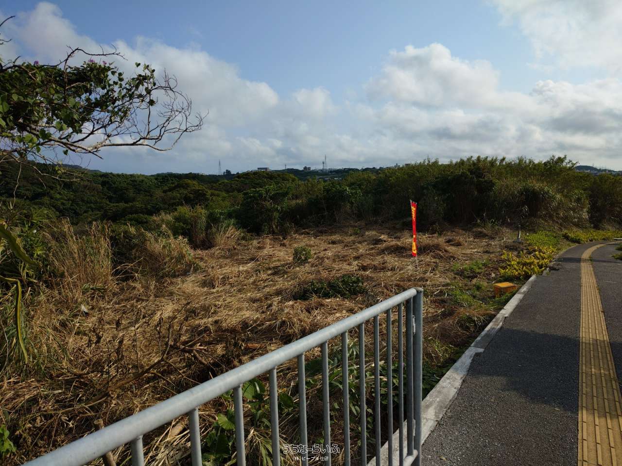 大里ニュータウン近く。後方の傾斜地に擁壁の築造必須。建築費かかります。