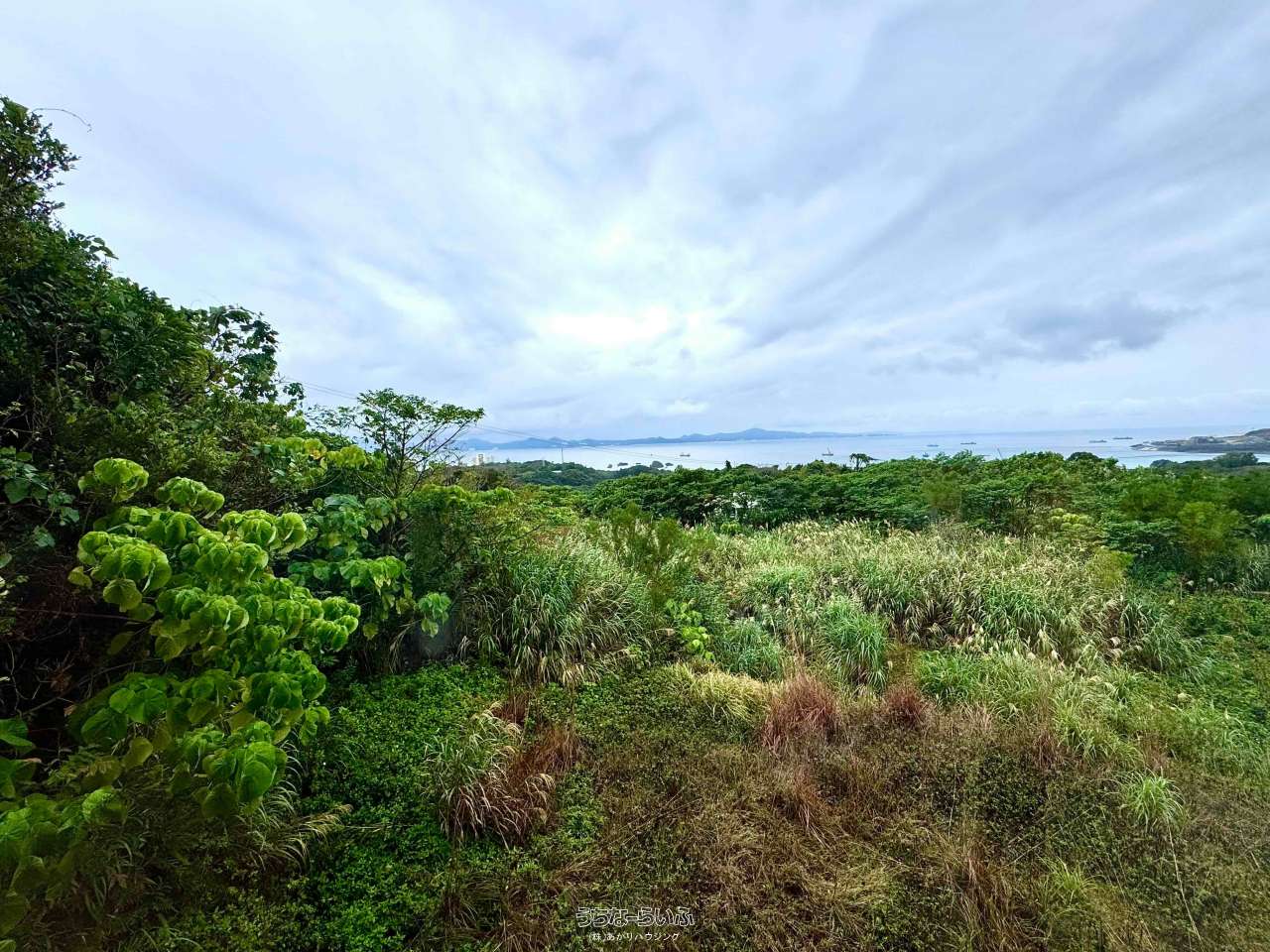 建物付の土地。名護湾一望の高台、正面に残波岬の眺望。