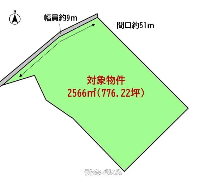 | 用途地域 | 無指定 | 接道方向 / 道路幅員 | 北西9m |