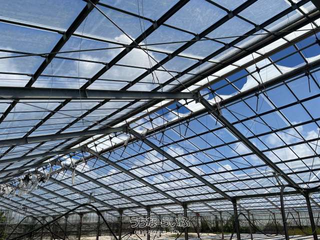 ビニールハウス(1,296㎡×2棟)、管理棟、倉庫付きの売農地となります。