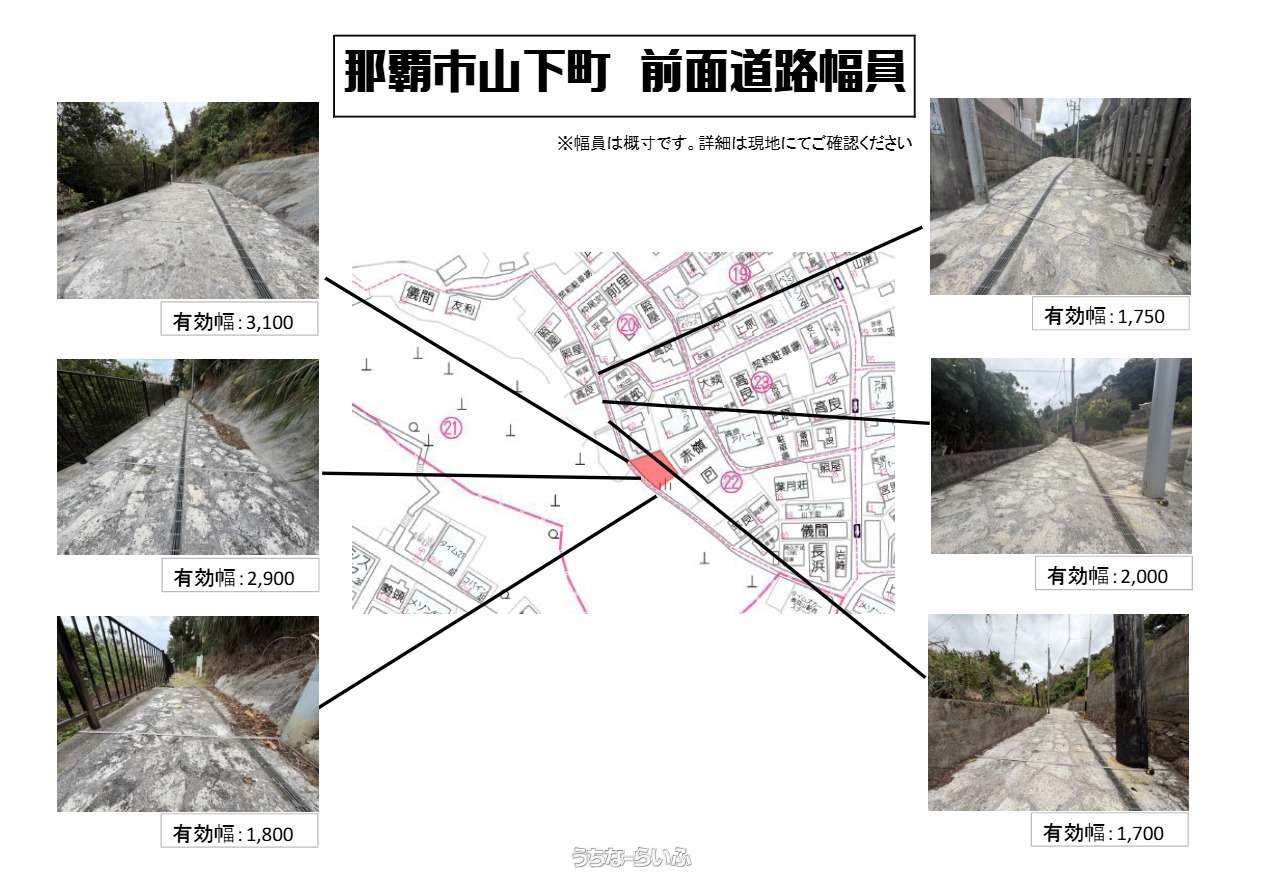 | 備考 | ■道路幅員:1.7m~3.1m(要セットバック) ■高低差有り(がけ条例抵触の可能性有り) ■車両進入困難地(最小有効幅員1.7m) ■前面道路下水道無し ■土砂災害警戒区域(急傾斜地の崩壊) ・とにかく土地取得費を抑えたい方 ・建築コストを含めた総予算で計画される方 ・平屋やコンパクト住宅を検討中の方 ・投資用地や資材置場等、用途を工夫できる方にとっては、大きな可能性を秘めた物件です。 建築の可否やプランについては、事前に行政・建築士への確認をおすすめいたします。 道路状況や法規制等を十分にご理解いただいたうえでご検討ください。 価格重視で那覇市内に土地を持ちたい方にとって、滅多に出ない水準の売出価格です。 条件があるからこそのチャンス物件です。 |