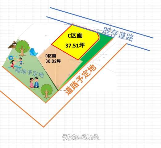 | 備考 | ①敷地の南側は地区計画によると緑地で住宅が建築される予定は無く開放感が見込めます。②現況での販売です。(上下水道の引込工事は買主負担となります) 土日祝日の見学予約については、事前にご連絡いただければ対応可能となります。 |