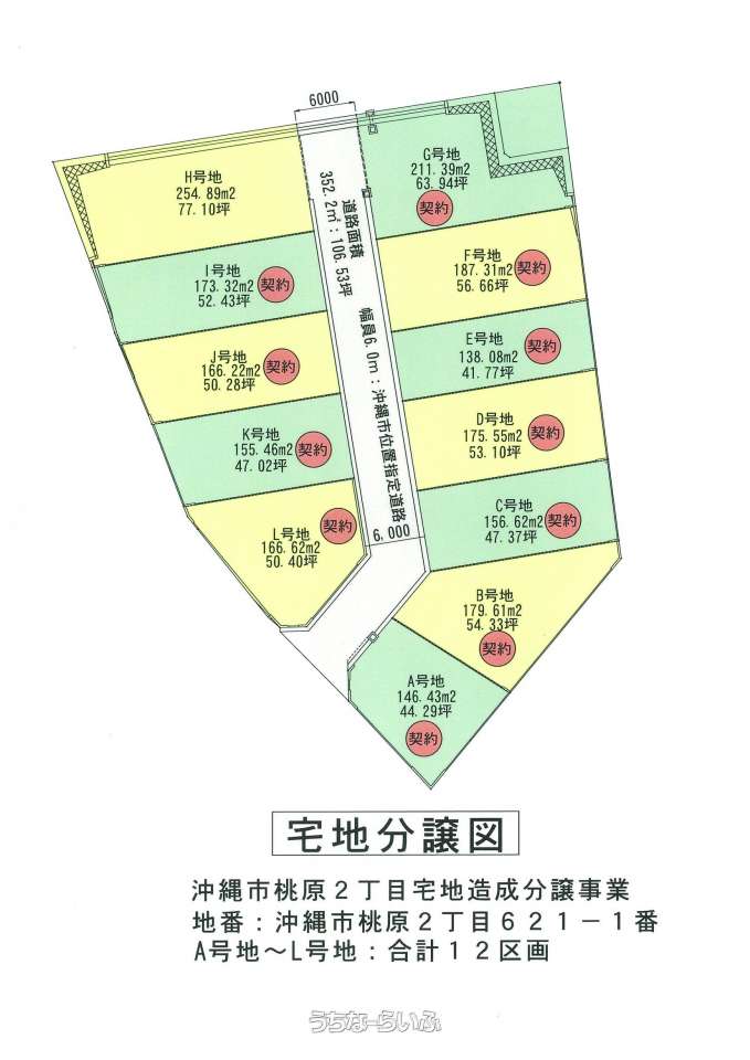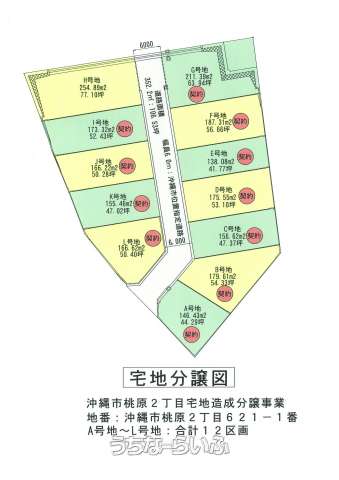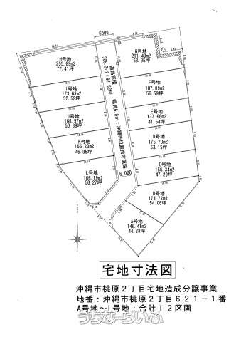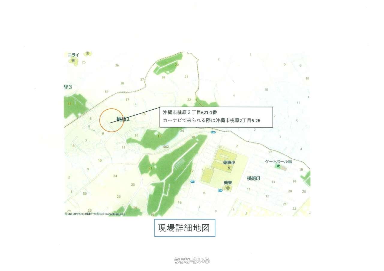 | 設備備考 | 最終価格値下げしました♪沖縄市桃原2丁目に新設造成工事が完成しました♪全12区画中、残り1区画分譲で及び77.11坪の住宅用宅地分譲です。また、建築条件付きではありませんので、お好きな建設業者様で建築可能です。皆様からのお問い合わせお待ちしております(*^_^*)※弊社売主のため仲介手数料は発生いたしません♪最終販売地H号地77.11坪2,100万円 残り1区画の販売となります。 |