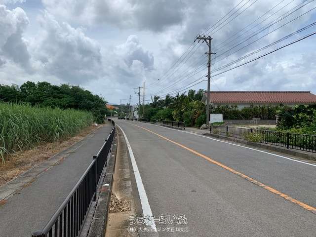 石垣市野底、県道沿いで住居、店舗の集まっている地区内で、ご商売等に向いた環境です。山々、農地、森林、海等、自然に囲まれた物件です。