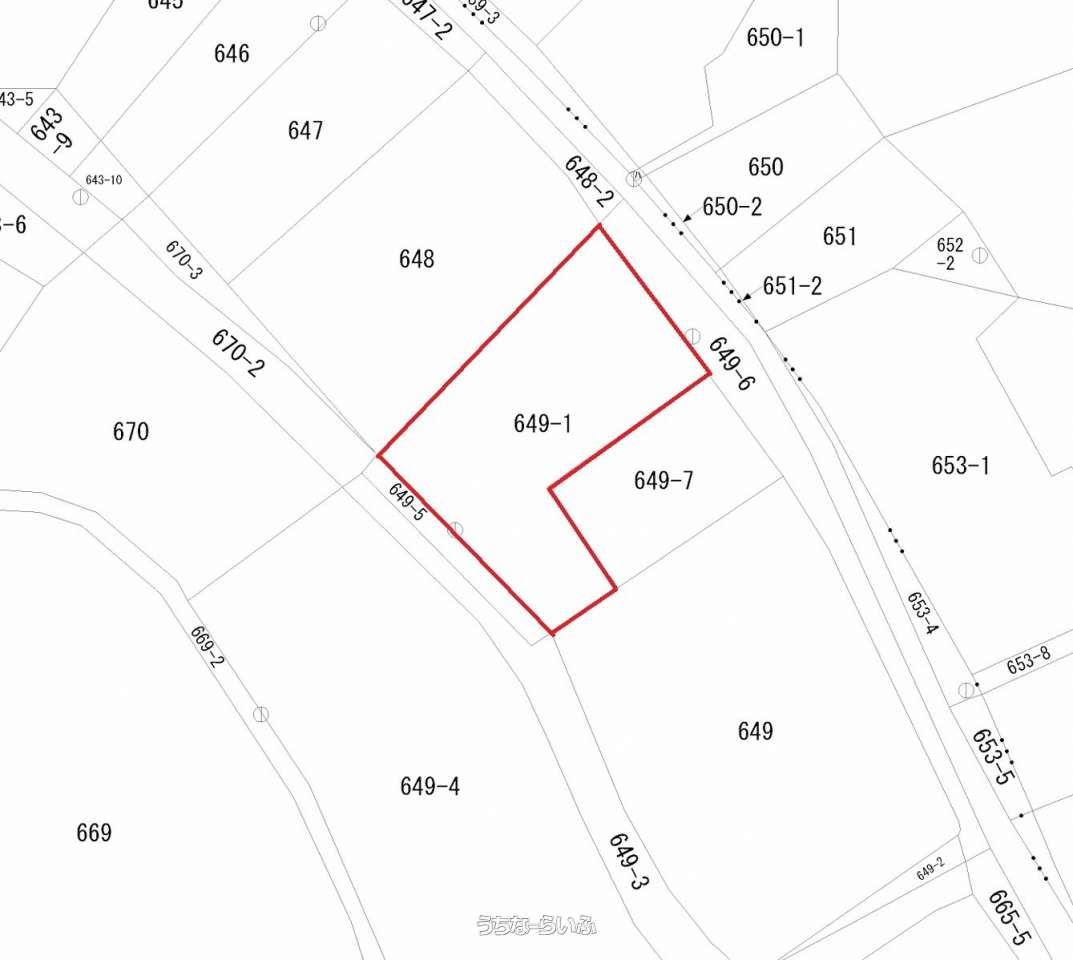 | 用途地域 | 第一種住居 | 接道方向 / 道路幅員 | 北東5.7m、 南西3.5m |