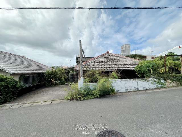 【建築条件なしの117坪!小学校・ライカムイオンモール近く】☆道路北東約5.7m/南西約3.5m※上物有り・現状引き渡し、解体費用買主様負担