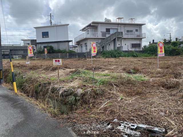 【うるま市喜仲4丁目に売地出ました】具志川高校、道向かいから入って約100m!合計3筆、約1,025坪の角地です!現在地目は畑、建物建築には農地転用5条申請必要です!敷地内に一部水路あり。 3筆一括での販売になります。アパート用地や建売分譲地などご検討いかがでしょうか。