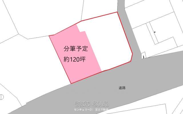 旧宮原小学校近く、県道194号線に面した土地です。静かな場所で、歩いてすぐの場所に宮原公園があります。120坪で分筆予定ですが、面積相談可能です。