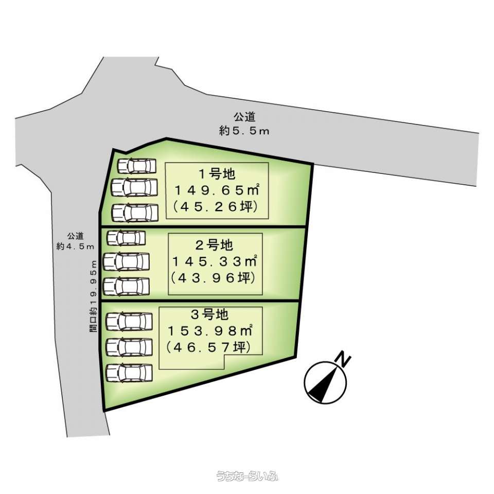 | 価格備考 | 3区画分譲中【1号地:2,298万円 45.26坪 2号地:2,298万円 43.96坪 3号地:2,398万円 46.57坪】 ご契約時、収入印紙・手付金が必要になります。諸費用等は担当から詳細をご説明します。 | ||