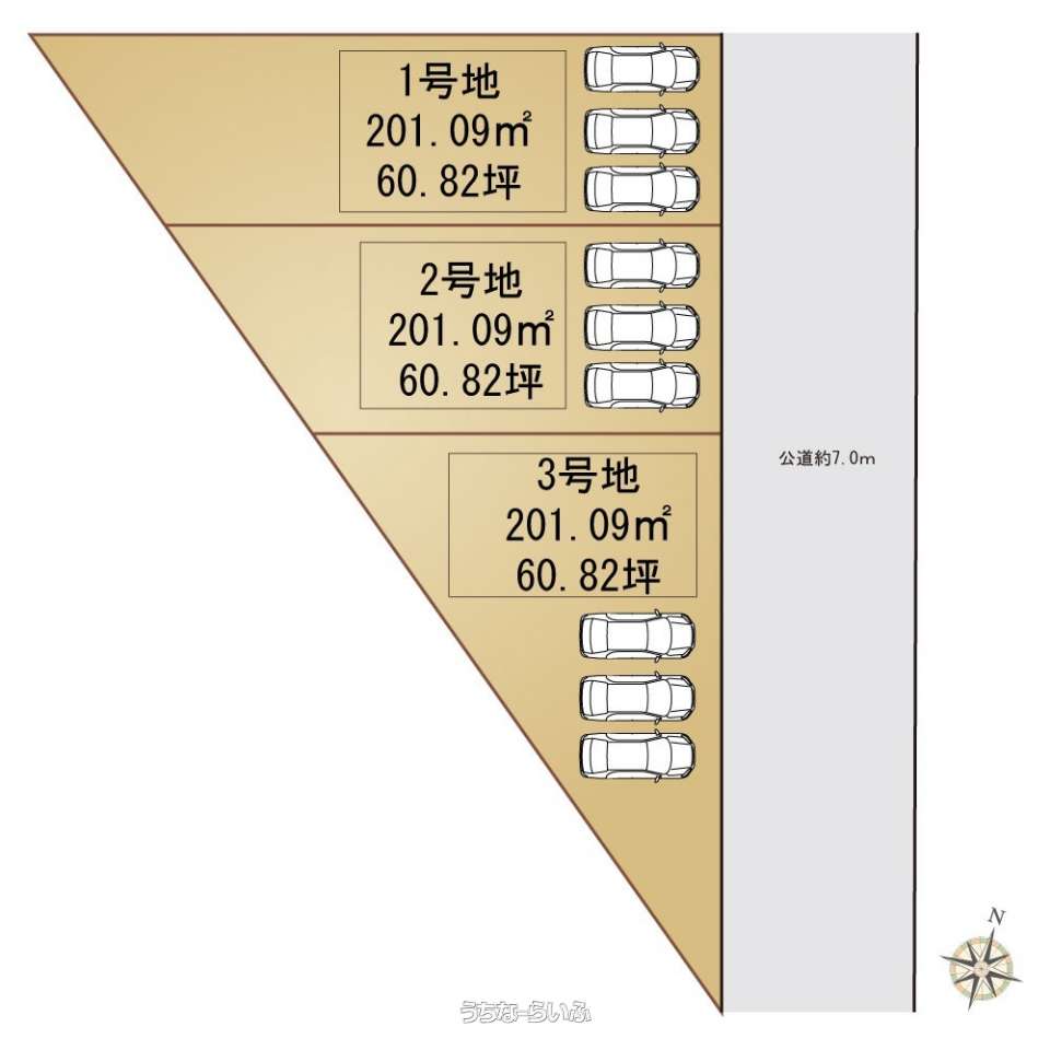 | 価格備考 | 3区画分譲中【1号地:3,698万円 2号地:3,298万円 3号地:3,098万円】 ご契約時、収入印紙・手付金が必要になります。諸費用等は担当から詳細をご説明します。 | ||