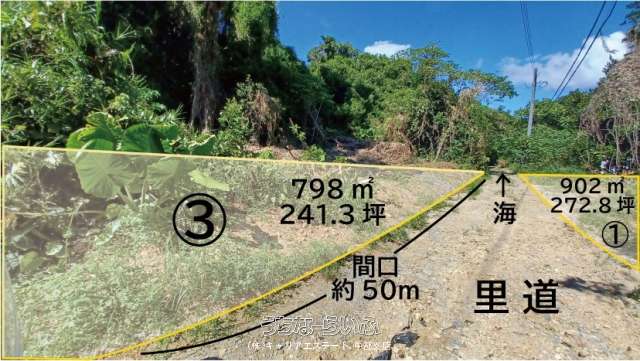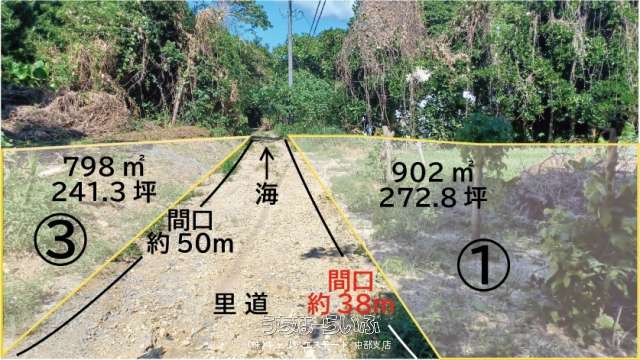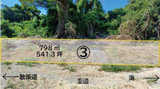 | 備考 | 3筆あります。(798㎡/902㎡/1609㎡)合計3,309㎡(1001坪) ●バス停「上運天」バス停まで徒歩15分(要確認) ●沖縄自動車道「許田」ICから車で30分(22.9km) ●上運天公民館徒歩15分(1.17km) ●今帰仁村役場まで車で8分(4.2km) 「自然公園法」「景観条令」「運天集落地域」建築条件・高さや面積の制限あります。 |