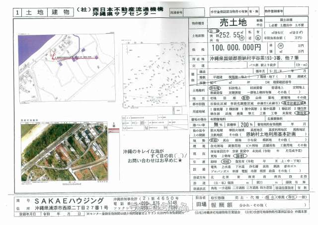 恩納村字谷茶に252坪の売土地出ました(^O^)/