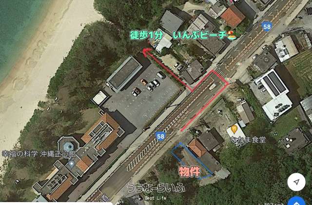 【いんぶビーチまで徒歩数分の立地!】国道58号線沿い、事務所・店舗用地向き!