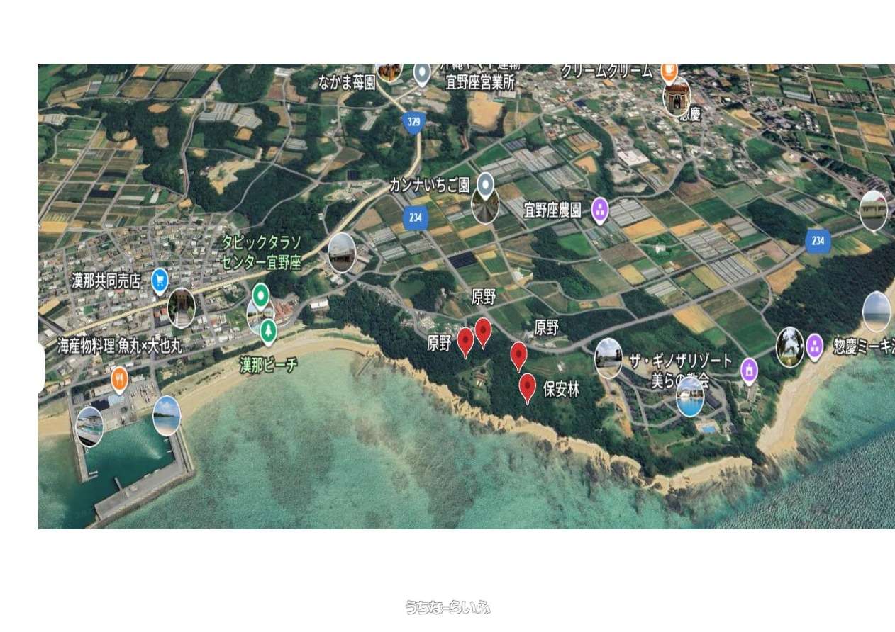 宜野座村・漢那。保安林を含む、東海岸エリアの広大な土地。