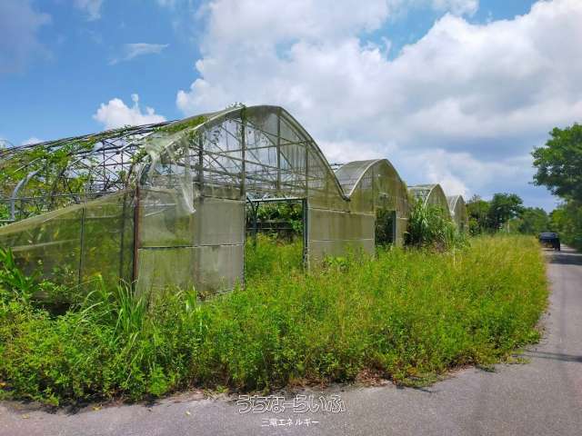 近代化農業の夢実現「農業ハウス134坪×4棟・作業小屋」、土地は平坦でアスファルト道路に接道、
