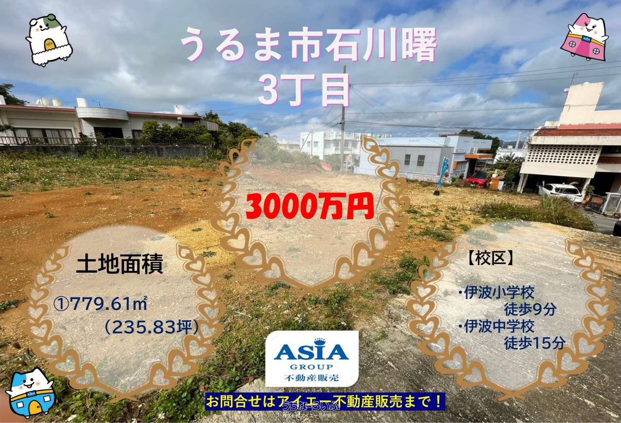 | 備考 | 早朝、夜間、いつでもご案内可能です♪まずはご覧になりませんか?お悩みの住宅ローンの相談もお任せ下さい!お気軽にアイエー住宅販売まで♪ ********************************************** 【周辺環境】 ・伊波小学校 徒歩9分 ・伊波中学校 徒歩20分 ・ローソン石川曙店 徒歩5分 ・タウンプラザかねひで石川店 徒歩6分 ************************************* |