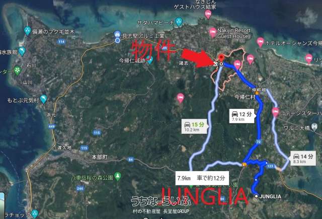 ●ジャングリアまで車で約15分 ●美ら海水族館まで車で約13分 ●古宇利島まで車で約16分