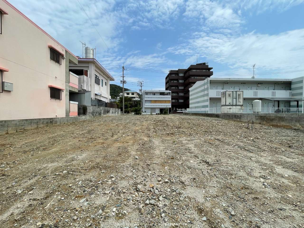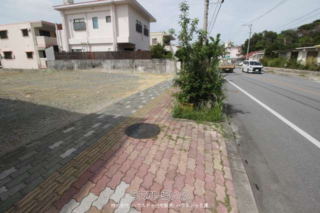 【名護の県道沿い!】近隣は、住宅と飲食店が多い立地です♪接道道路幅 約15.8m 土地面積:約82坪