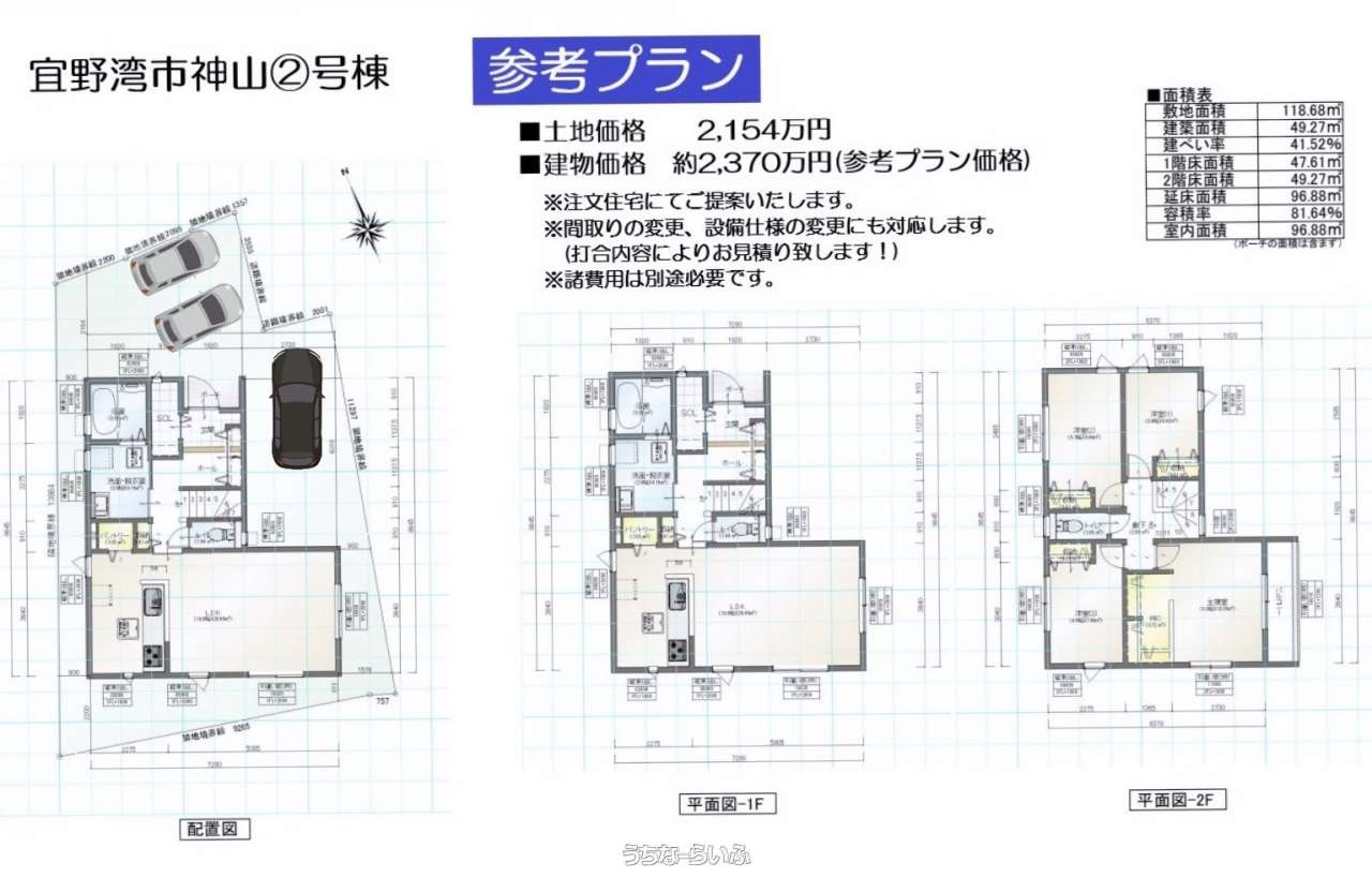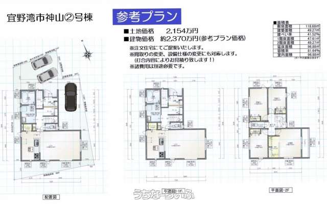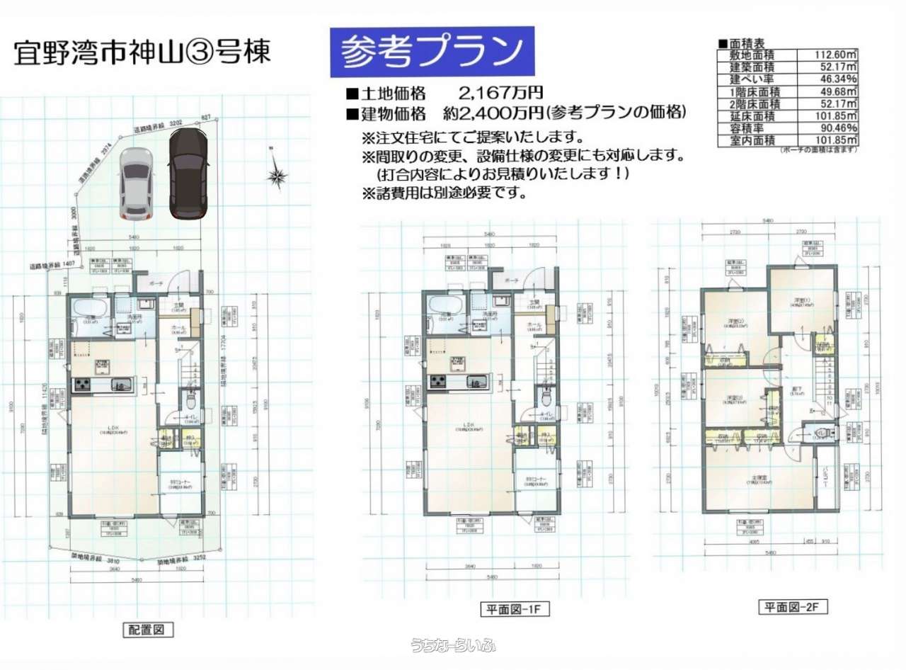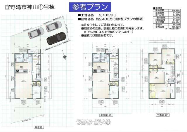 | 価格備考 | ■面積・販売価格 ①号地:156.92㎡:2730万円 ②号地:118.68㎡:2154万円 ③号地:119.42㎡:2167万円 ④号地:118.60㎡:2152万円 ⑤号地:143.43㎡:2600万円 | ||