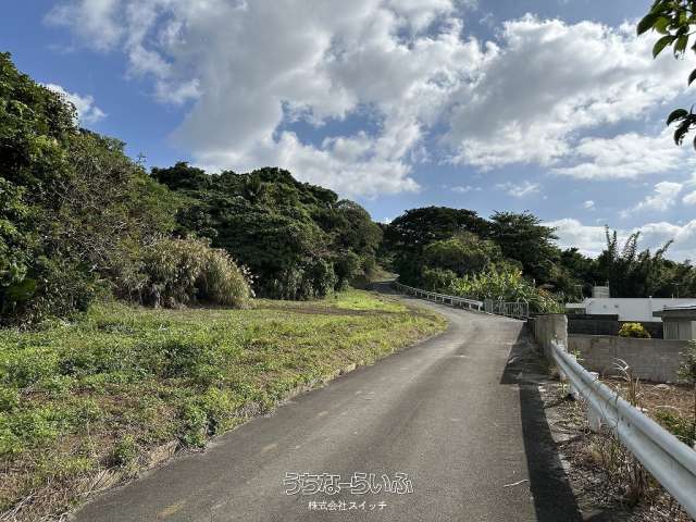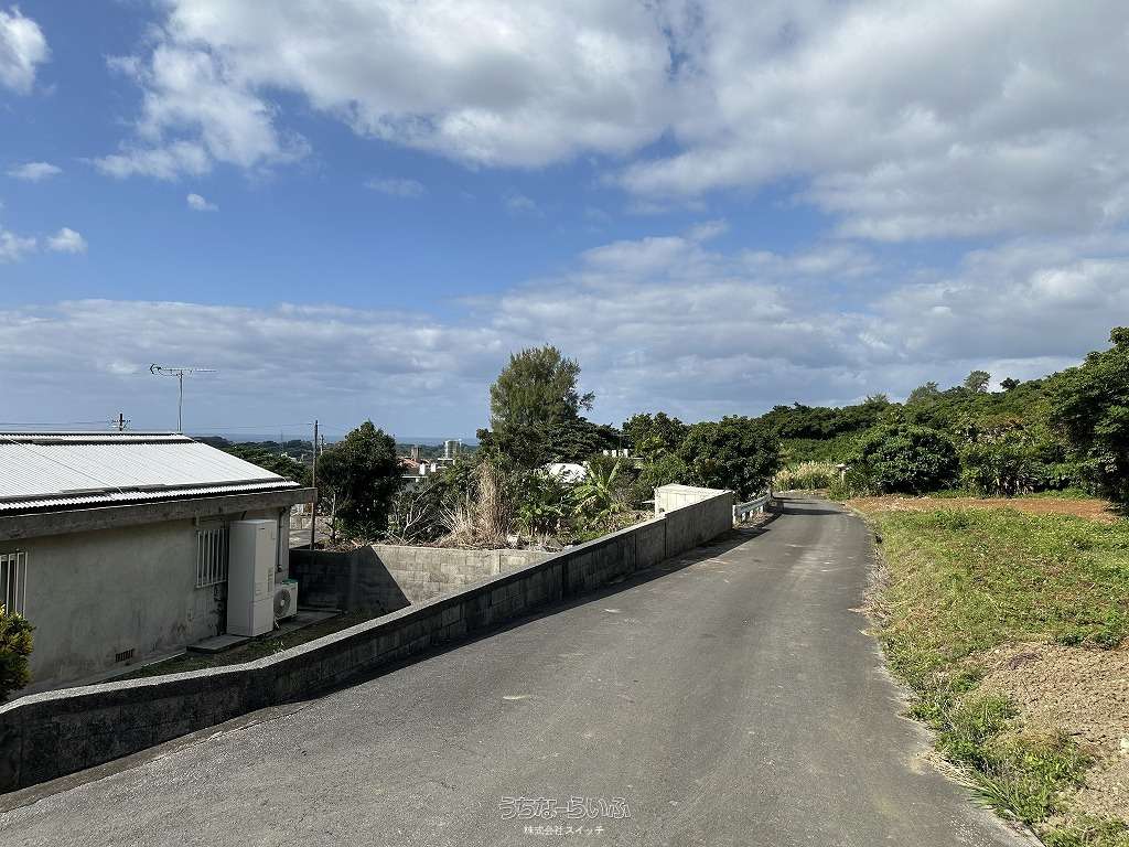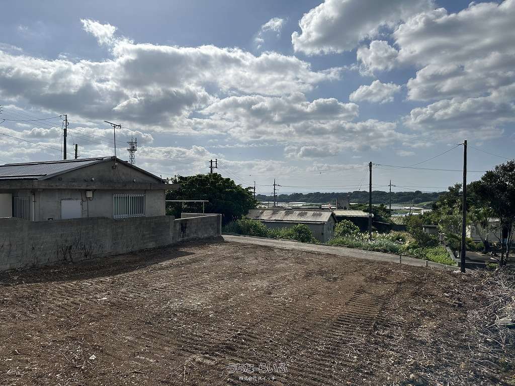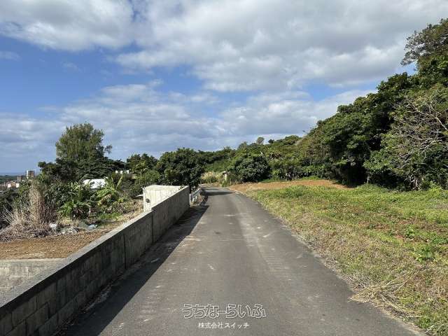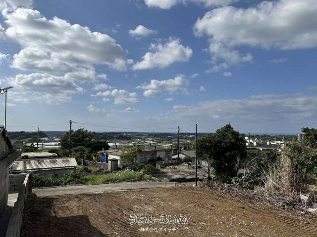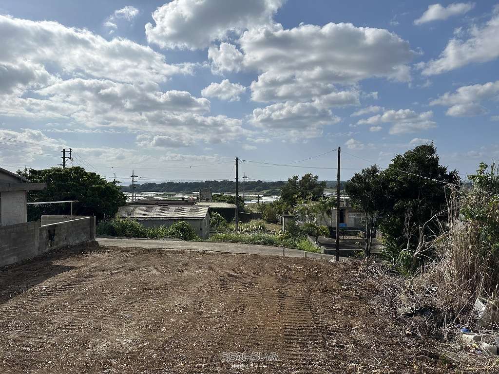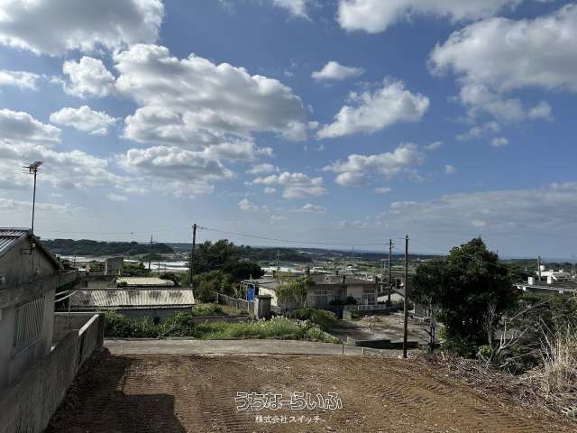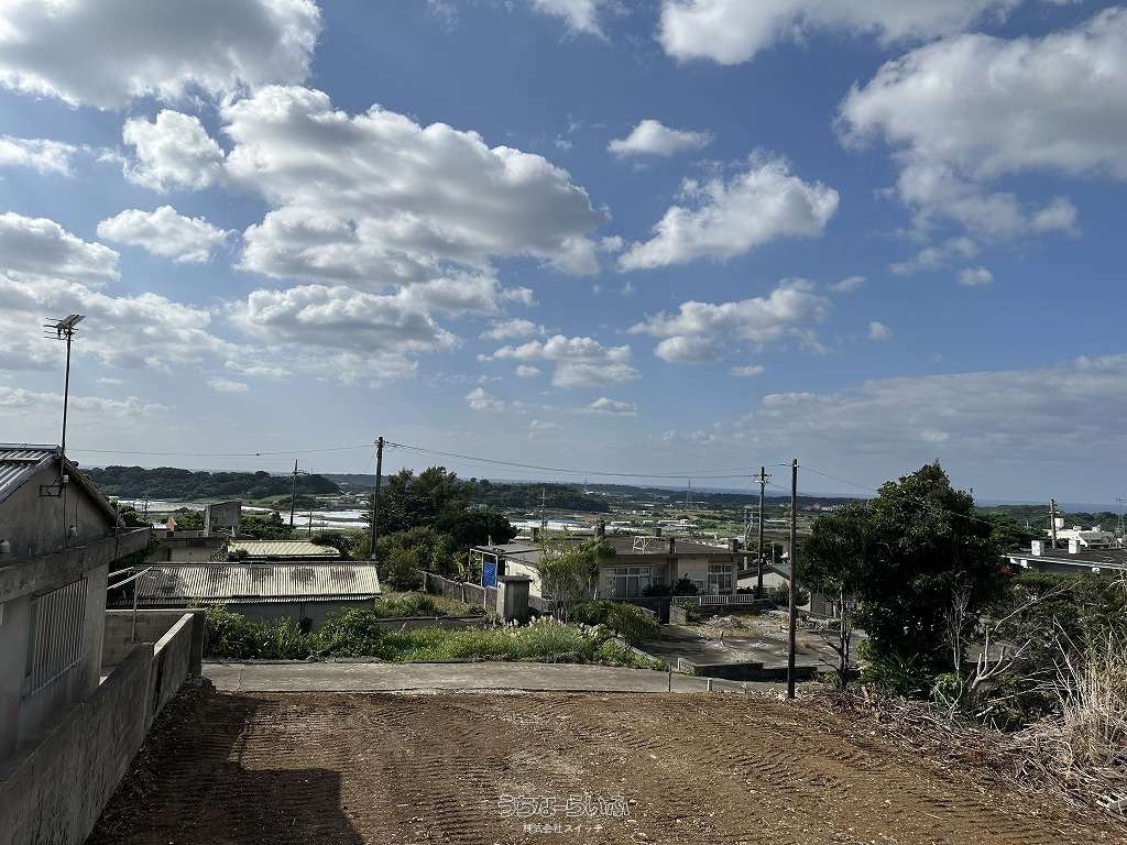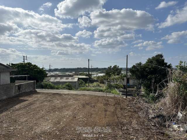 ★丘の上、海の見える土地★標高約96mの高台から見下ろす景色は爽快です。遠くに見える太平洋のキラキラと輝く水平線が綺麗です★周辺は畑や赤瓦の点在した田舎の風景★新垣地域一周線が物件まで開通し、大きな車の乗り入れもスムーズ。歩いて1分の公園は広い芝生が管理されペットのお散歩にも快適です★静かな集落ですが、車で約7分も走らせばコンビニやスーパーもあり生活便利です。