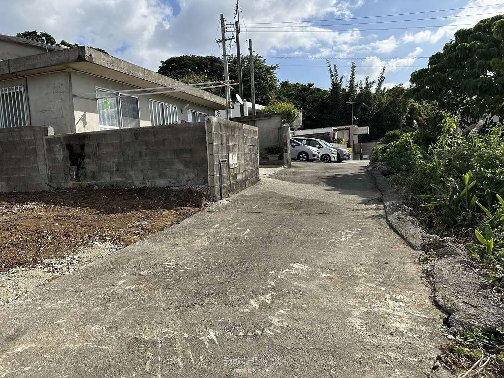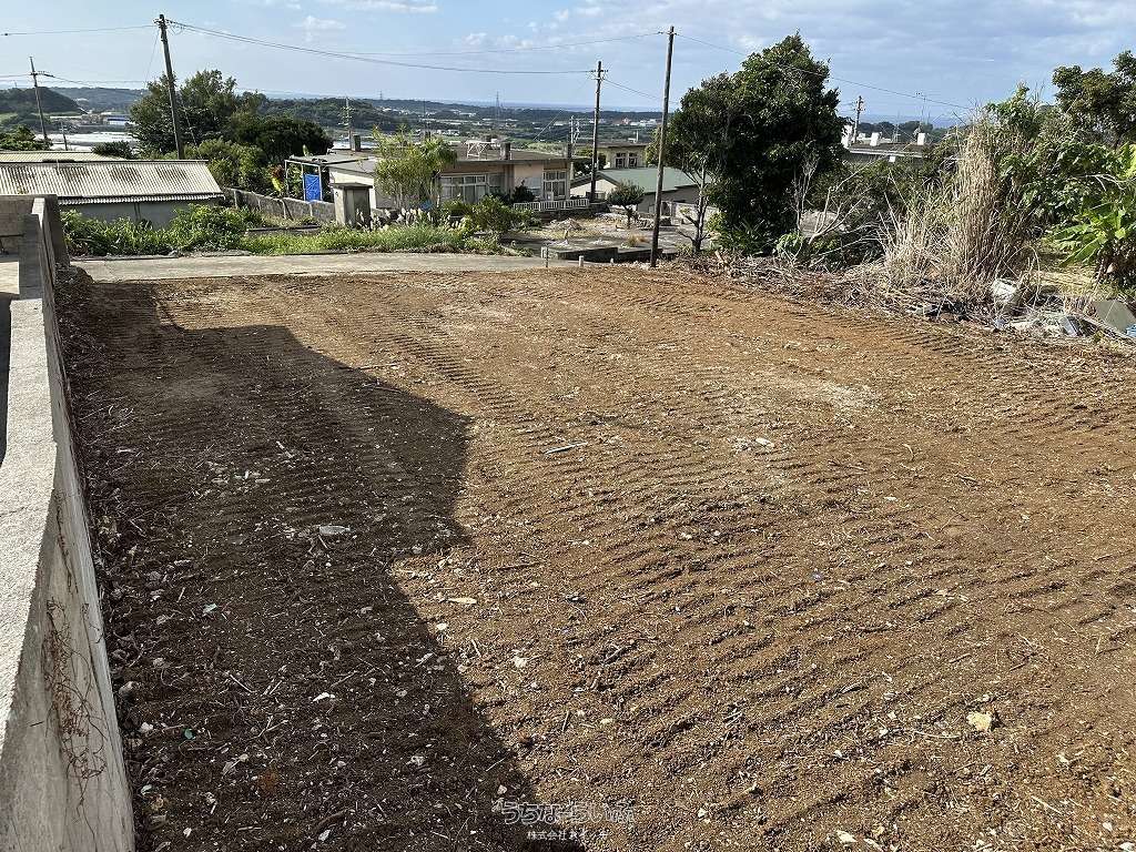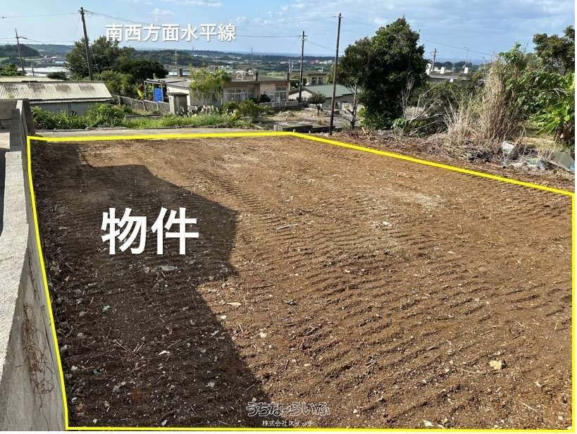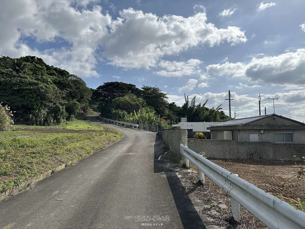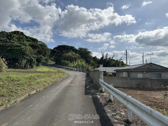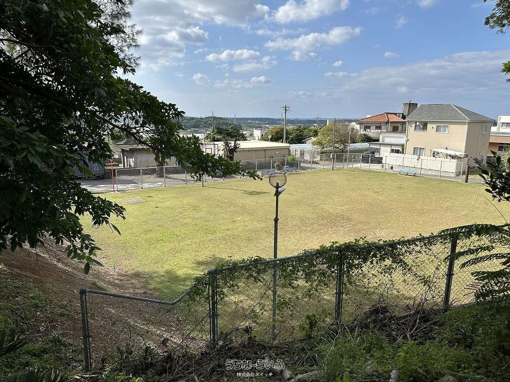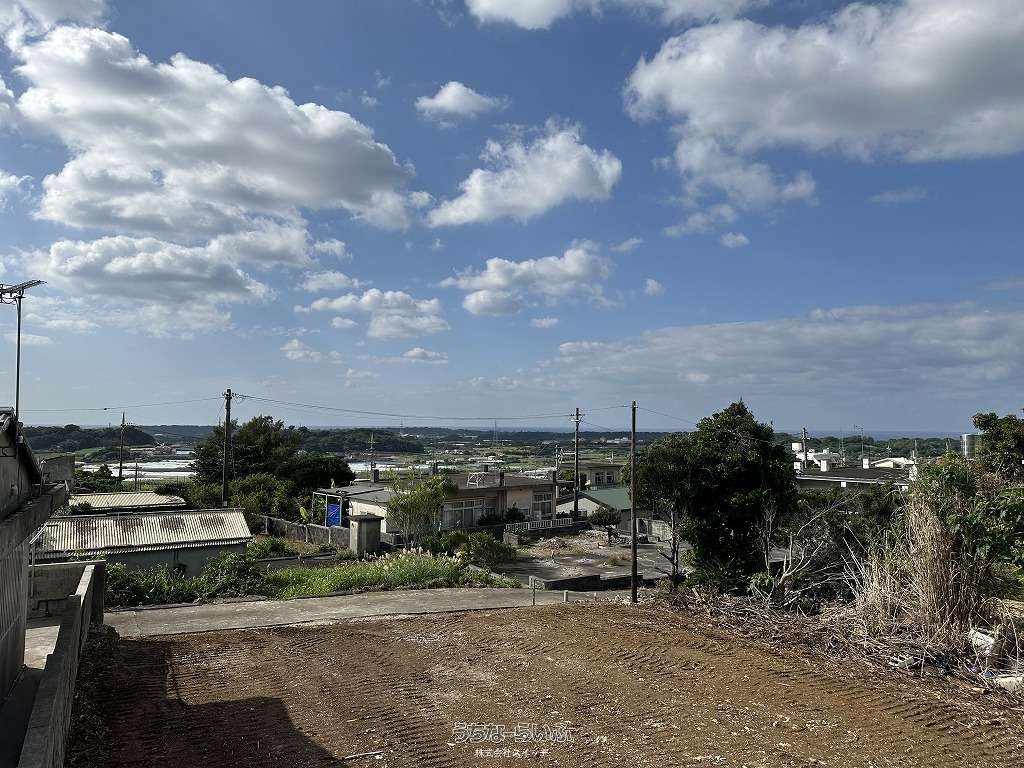 ★丘の上、海の見える土地★標高約96mの高台から見下ろす景色は爽快です。遠くに見える太平洋のキラキラと輝く水平線が綺麗です★周辺は畑や赤瓦の点在した田舎の風景★新垣地域一周線が物件まで開通し、大きな車の乗り入れもスムーズ。歩いて1分の公園は広い芝生が管理されペットのお散歩にも快適です★静かな集落ですが、車で約7分も走らせばコンビニやスーパーもあり生活便利です。