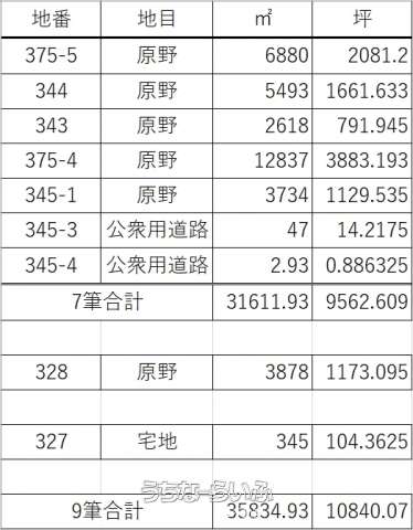 | 土地面積 | 35834.93m² / 10840.07坪 | 地目 | 原野 |