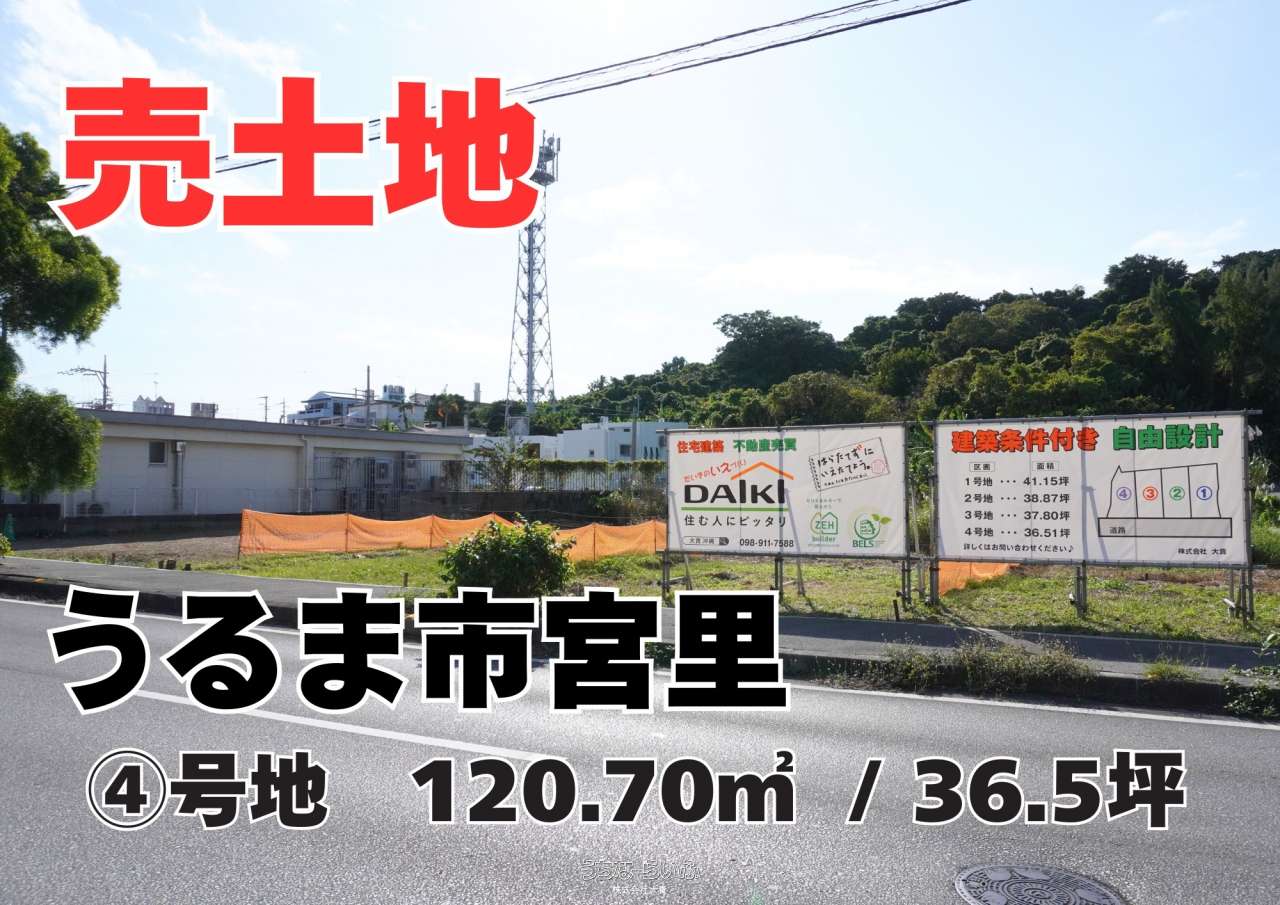| 備考 | ※商談中!【うるま市宮里④号地】全4区画宅地分譲販売! RC造(鉄筋コンクリート造)・建築条件付き・自由設計 小学校まで徒歩圏内。コンビニ・スーパーも近くにあり 利便性の高いエリアです♪ 人気エリアのため気になる方は、お早めにお問い合わせください! |