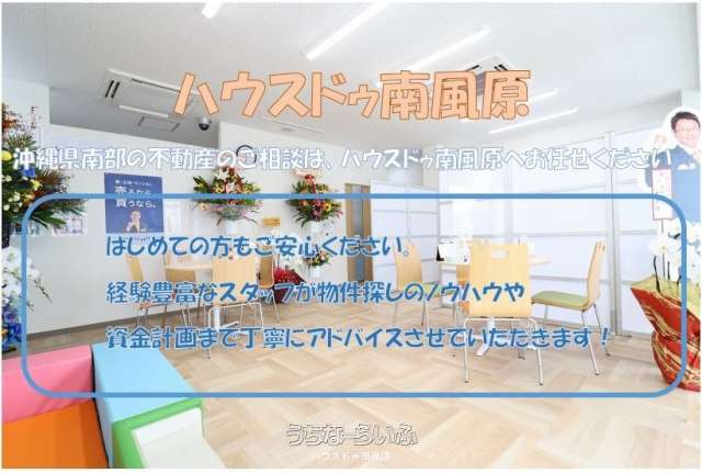 | 備考 | ◇学校区◇ ・知念小学校まで徒歩29分(約2300m) ・知念中学校まで徒歩28分(約2200m) ◇周辺環境◇ ・知名崎海岸まで車で2分(約700m) ・ローソン 南城知念まで車で2分(約850m) ・守礼カントリークラブまで車で3分(約900m) ・伊集スーパーまで車で4分(約1900m) ★ハウスドゥ 南風原のHPから『マイページ登録』をして頂くと日々更新される、HPでは一般公開されていない新着物件をいち早くご覧いただけます!登録は無料!是非ご活用くださいませ★ \購入相談会同時開催中/ ◆住宅ローン 借入限度額や自分に合った支払い額を知りたい方 お家探しの前に資金計 画を立てたい方、住替えをお考えの方 他社で断られた方… 一度ご相談ください。専門スタッフがわかりやすくご説明します! ◆ご家族お揃いでお気軽にお越しください♪ キッズスペース・店舗前に駐車場5台完備♪ お子様連れのお客様も安心して、物件探しをご相談頂けます♪ ◆お客様のご要望に応じた物件をまとめてご案内する物件ツアーも開催しております。 ハウスドゥ南風原店ではインスタグラムにて物件情報も公開しております! @haebaru0917rj で検索お願いいたします♪ |