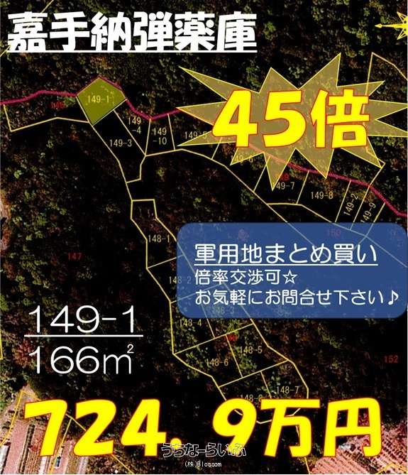 ★売主のため仲介手数料なし★45倍【軍用地】嘉手納弾薬庫地区149-1軍用地まとめ買い倍率交渉可!R7年賃借料1.19%UP!