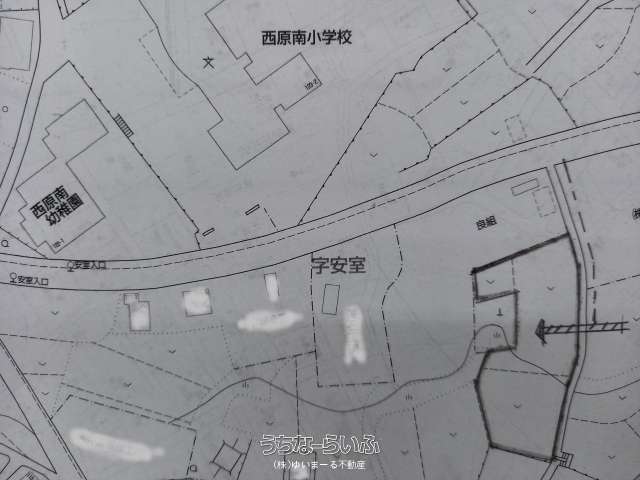 西原南小学校正門近く、大通りより30m、間口広い!740坪の貸地!